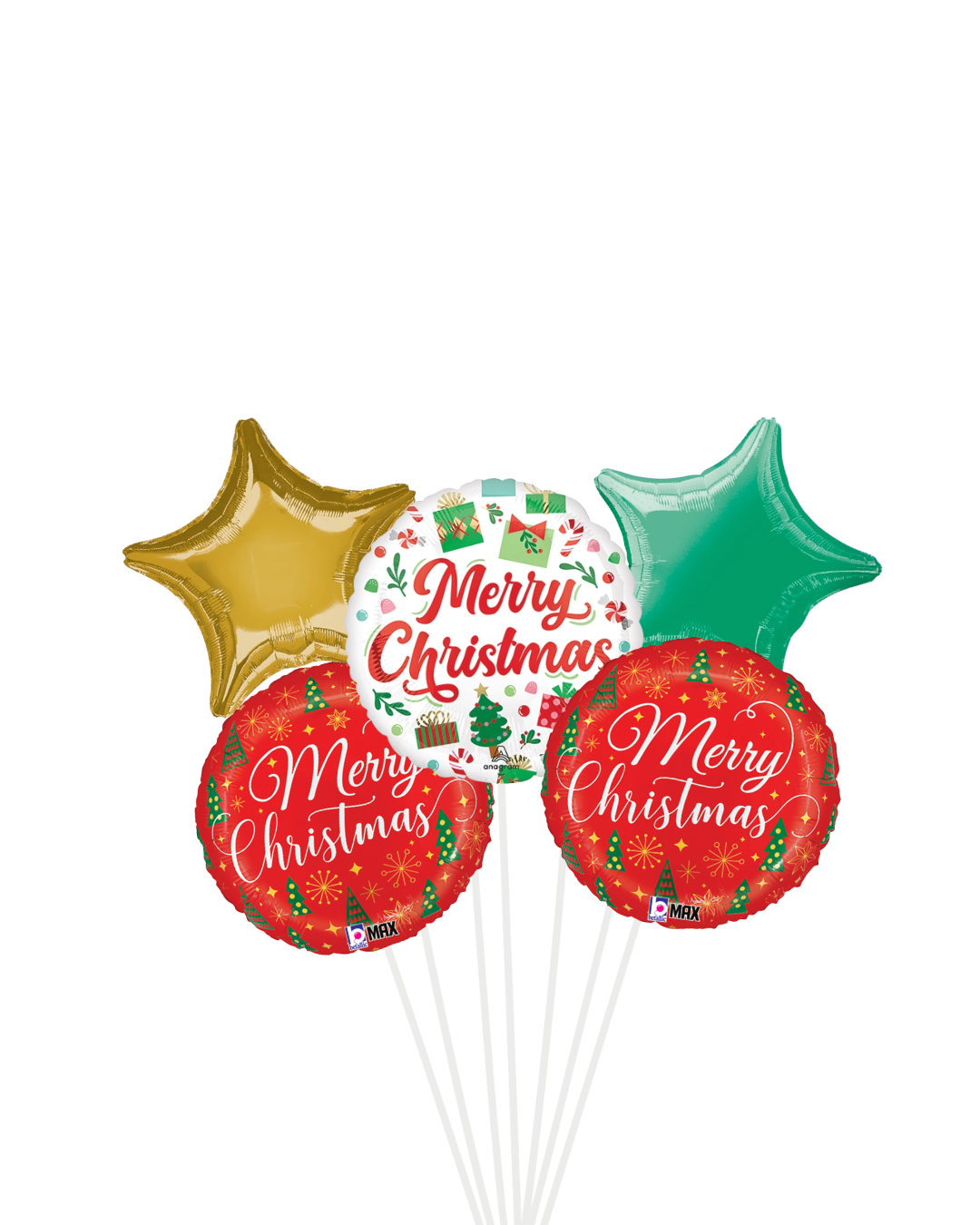 6 coordinating Christmas foil balloons (Merry Christmas + green & gold stars)